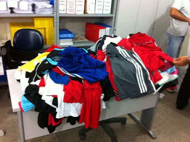 Entre os produtos falsificados estavam camisetas, calções e calças,